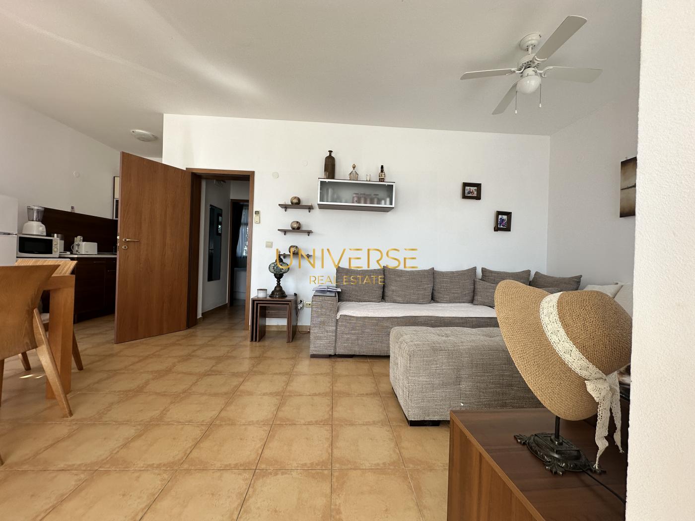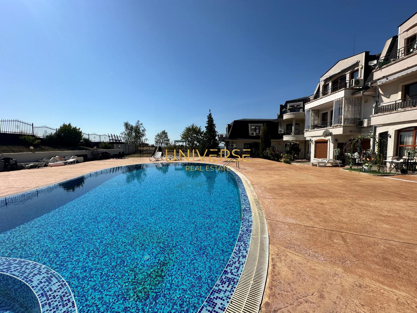 Продава се апартамент 2+1 в комфортен жилищен комплекс в Кошарица. Състои се от трапезария/кухня, 2 спални, входно антре, баня и тераса. Напълно обзаведен и оборудван. Комплексът е разположен в живописна местност в подножието на Стара планина. В близост се намира природният резерват Калината. Слънчев бряг е на 2 км, а плажът е на 3 км. Старинният град Несебър е на 7 км, а град Бургас е на 30 км. Естественото разположение на комплекса осигурява на апартаментите спиращи дъха гледки към морето и курортите. Районът е добре свързан с обществен транспорт. Комплексът е ограден по периметъра. Осигурени са ландшафтен дизайн и парково осветление. Удобствата на място включват портиер, открит басейн с детска секция, зона за релакс, ресторант, зона за барбекю, магазин, детска площадка, спортна площадка, фитнес център на открито и други. Включено е и видеонаблюдение. Паркинг. Акт. 16. #5173