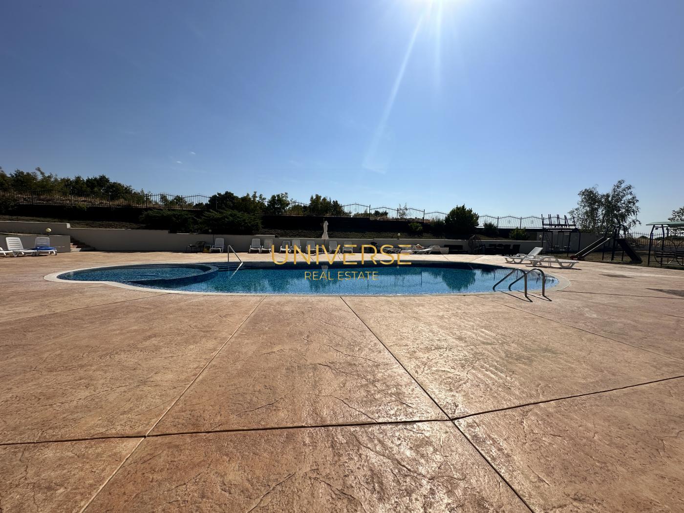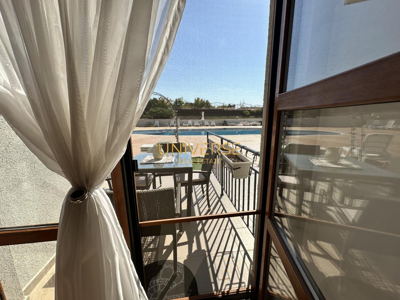 - Изглед от прозореца:бассейн