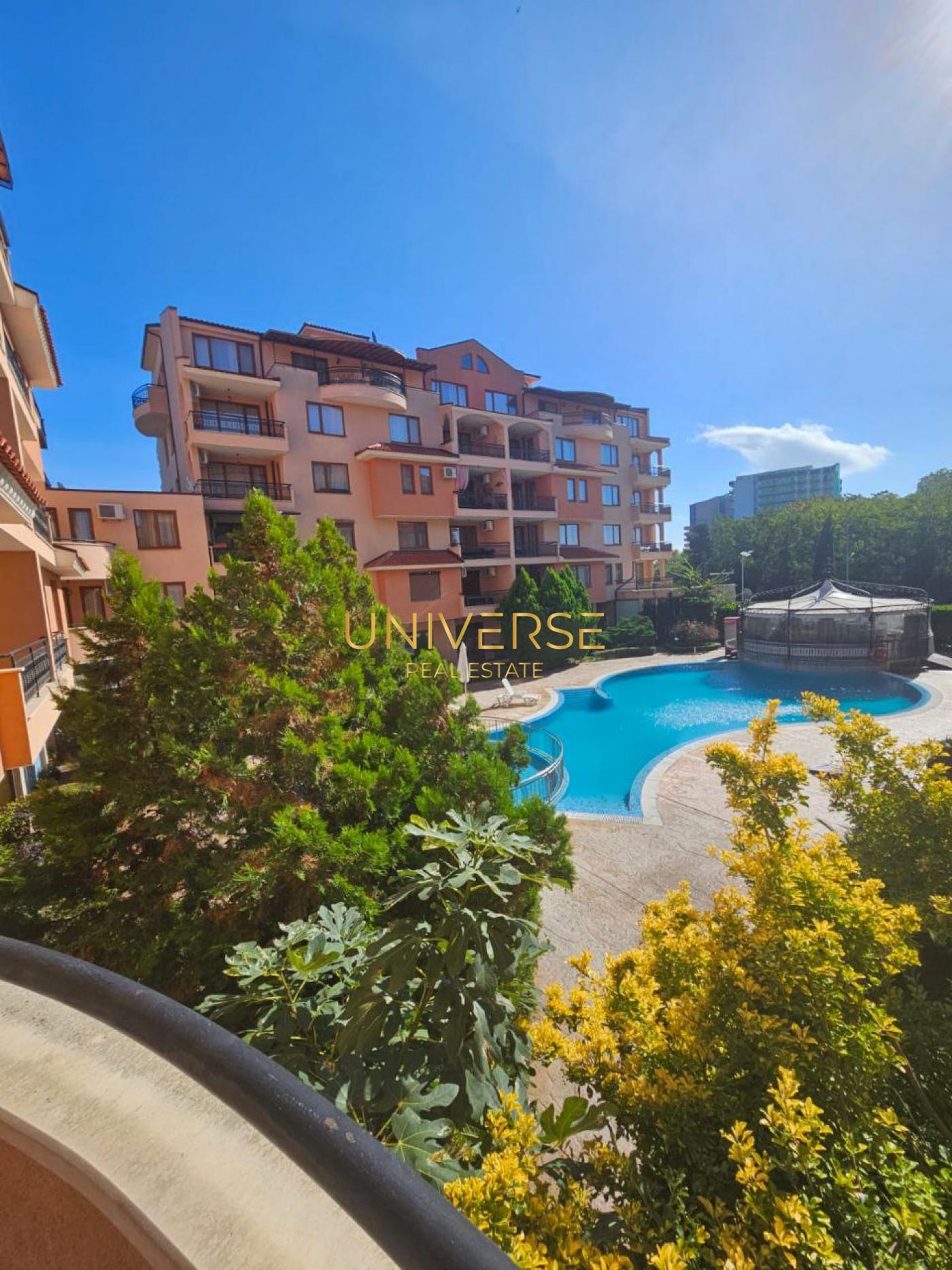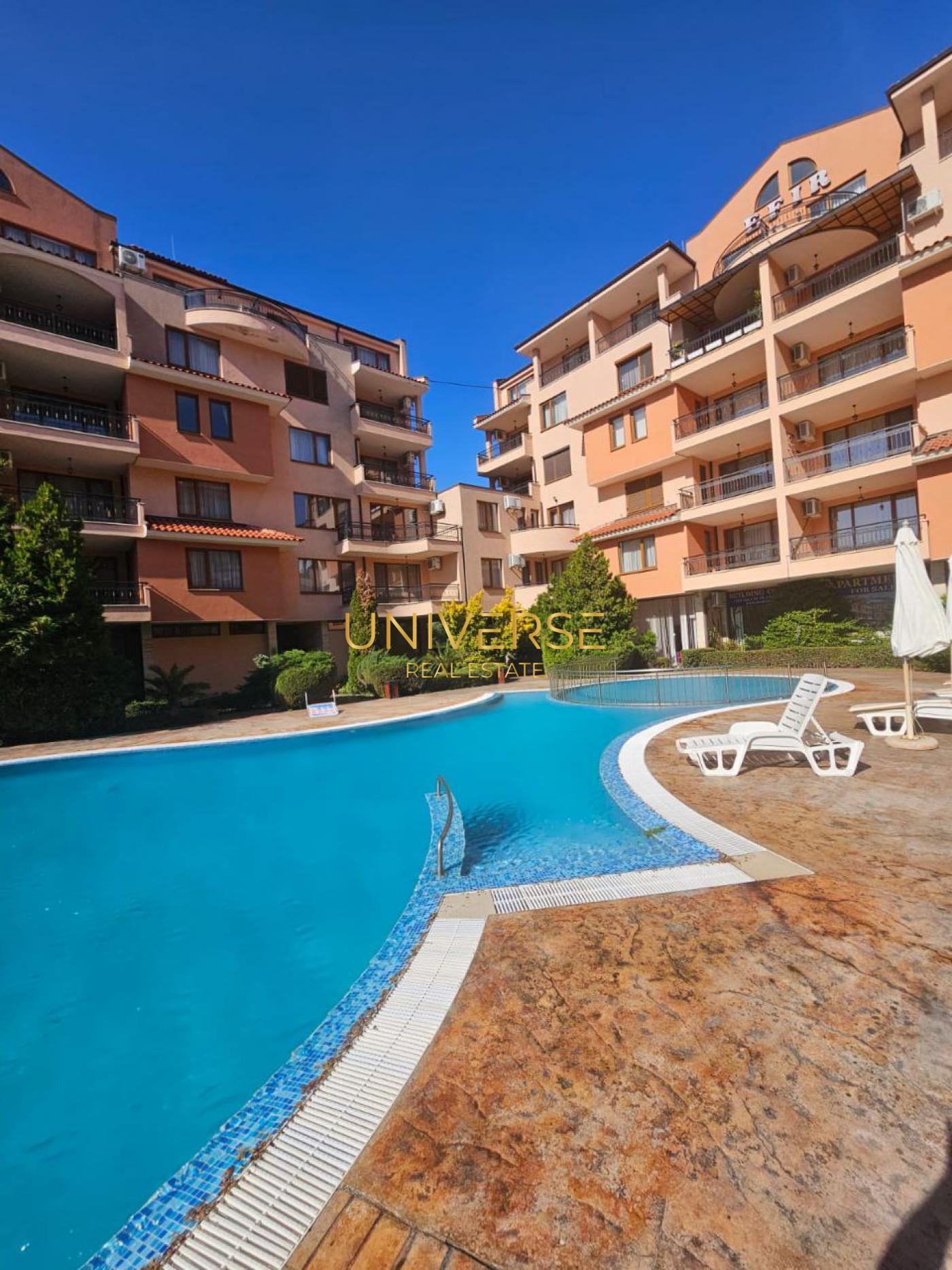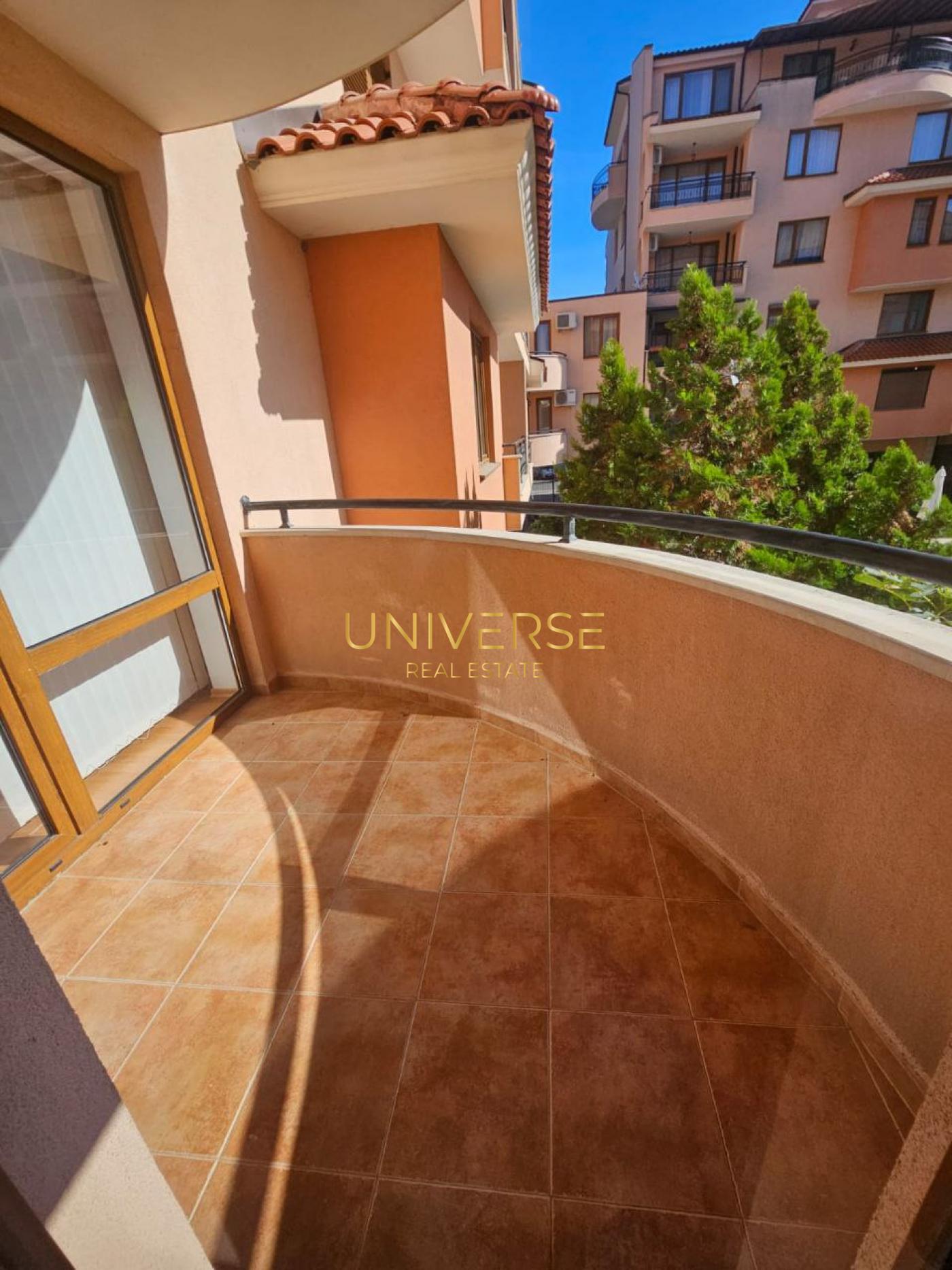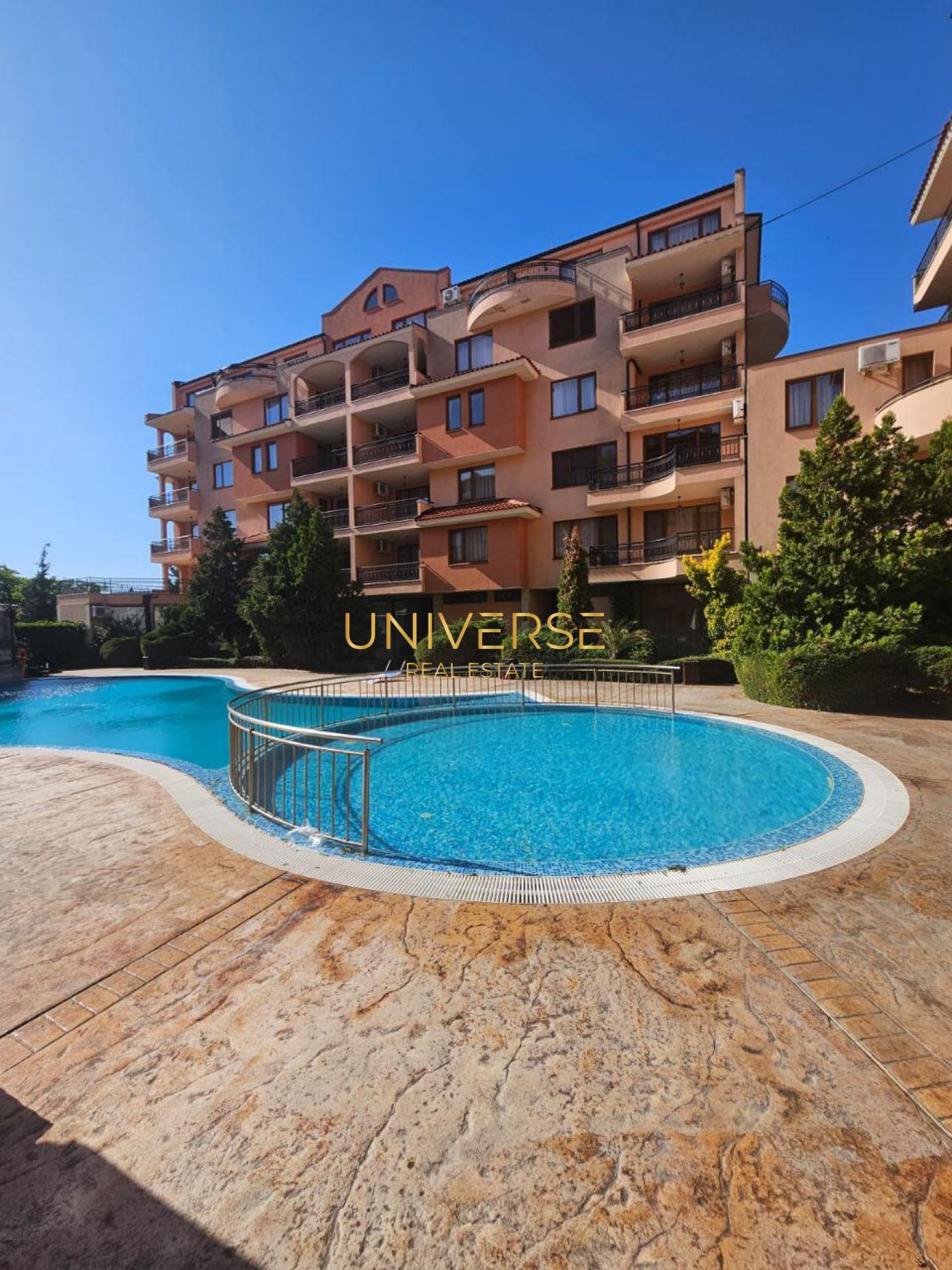 Продава се апартамент с 2 спални в тих район на Слънчев бряг. Състои се от кухня-трапезария, две спални, баня, коридор и голям балкон. Напълно е обзаведен и оборудван. Комплексът разполага с басейн за възрастни и деца. В близост се намират магазини, кафенета, голям супермаркет и детска площадка. Подходящ както за целогодишно живеене, така и за отдаване под наем. #5046