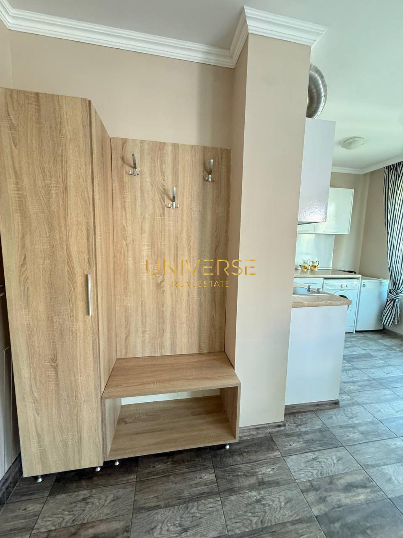 Предлагаме за продажба 1+1 апартамент в целогодишен комплекс в Свети Влас. Апартаментът се състои от кухня-трапезария, спалня, коридор, баня с душ и тераса. Апартаментът е напълно обзаведен и оборудван с всички необходими уреди за комфортен престой. Всички необходими удобства са на пешеходно разстояние. Морето и плажът са на 300 метра. Супермаркет „Марина“, аптека, автобусна спирка, кафене и казино са на 100 метра. Яхтено пристанище „Марина Диневи“ е на 700 метра. Подходящ за целогодишно ползване и отдаване под наем. Акт 16. Електричество! #5697