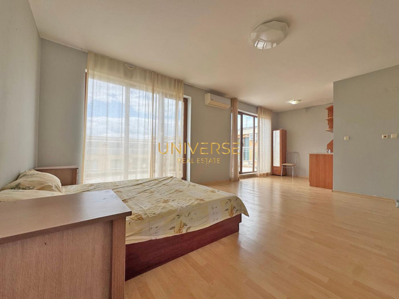 Продава се просторно студио в целогодишен комплекс в Слънчев бряг. Апартаментът е напълно обзаведен и оборудван. Комплексът се намира на 10 минути от плажа, в тих район, на пешеходно разстояние от всички градски удобства. Комплексът разполага с басейн, зона за отдих, паркинг, ограничен достъп и видеонаблюдение.