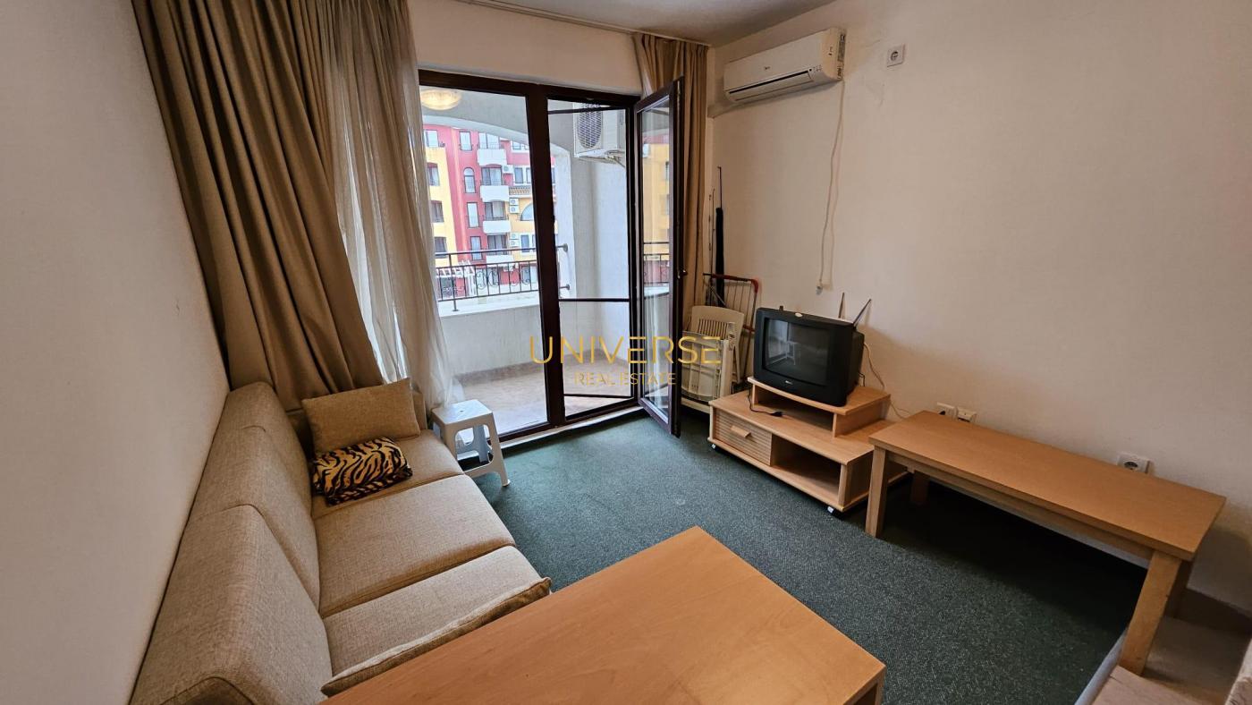 Предлага се за закупуване много атрактивен апартамент 1+1 в Слънчев бряг в жилищен комплекс. Състои се от кухня/трапезария, една спалня, баня и балкон. Апартаментът е напълно обзаведен и оборудван. Разполага с топ локация, само на 2 минути от морето. Жилищният комплекс разполага с басейни, аквапарк и множество кафенета и ресторанти. Всички удобства са наблизо. Акт 16. #5788
