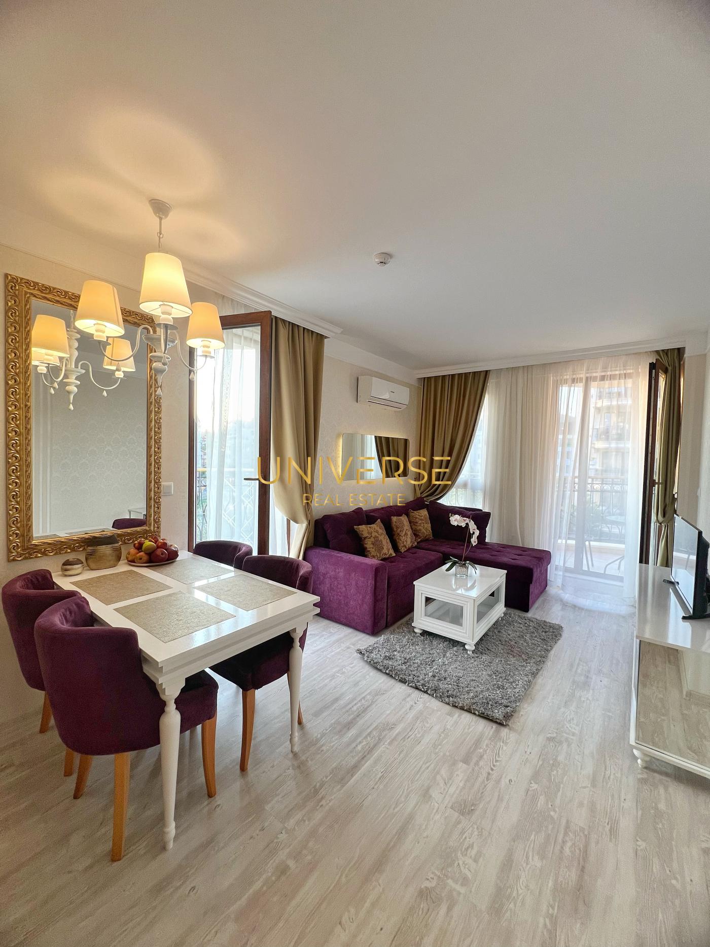 Двустаен апартамент в премиум комплекс в Свети Влас. Разпределение: хол с кухненски бокс, спалня, коридор, баня с душ и тераса. Продава се с всички мебели и висококачествени уреди. Този луксозен комплекс се намира само на 200 метра от плажа. Инфраструктура и удобства в комплекса: басейн; спа център; фитнес зала; ресторант; детска площадка; пешеходни алеи; охрана; видеонаблюдение; Акт 16. В премиум комплекс в Свети Влас.