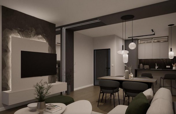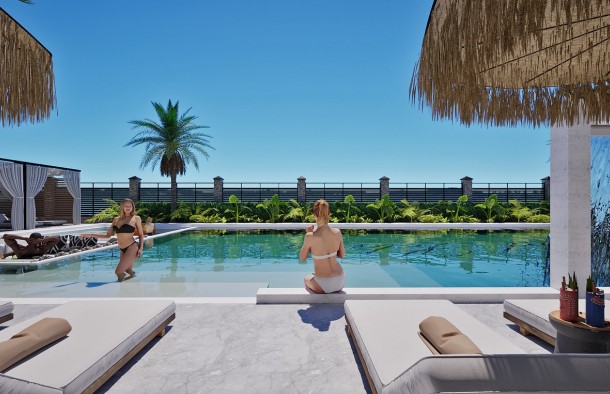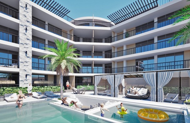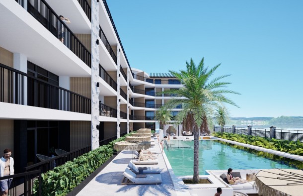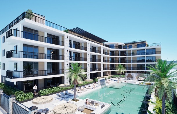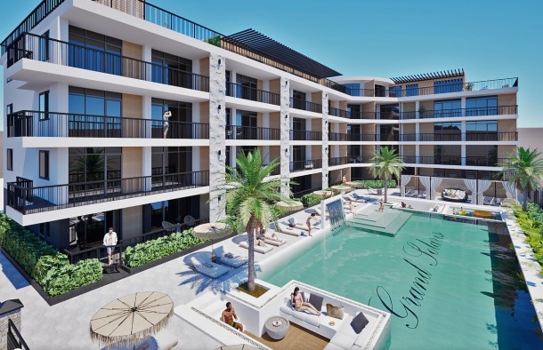 На территории комплекса будут обустроены парковка, бассейн, места для отдыха. Локация — центр Солнечного берега, вся круглогодичная инфраструктура, спокойная, тихая улица на которой расположены престижные комплексы курорта, квартал Чайка.