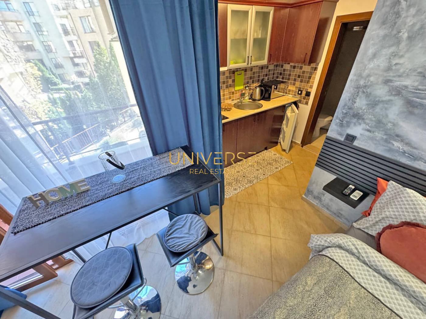 In Sveti Vlas steht ein möbliertes und voll ausgestattetes Studio-Apartment in einer komfortablen Wohnanlage zum Verkauf. Die Anlage ist ganzjährig geöffnet und ideal für einen dauerhaften Wohnsitz. Alle Bewohner profitieren von einer geschlossenen Wohnanlage, einem Swimmingpool, einem Kinderspielplatz und Parkplätzen. Das Meer ist nur 300 Meter entfernt. Einkaufsmöglichkeiten und eine Bushaltestelle befinden sich in unmittelbarer Nähe. Akt 16.#5543