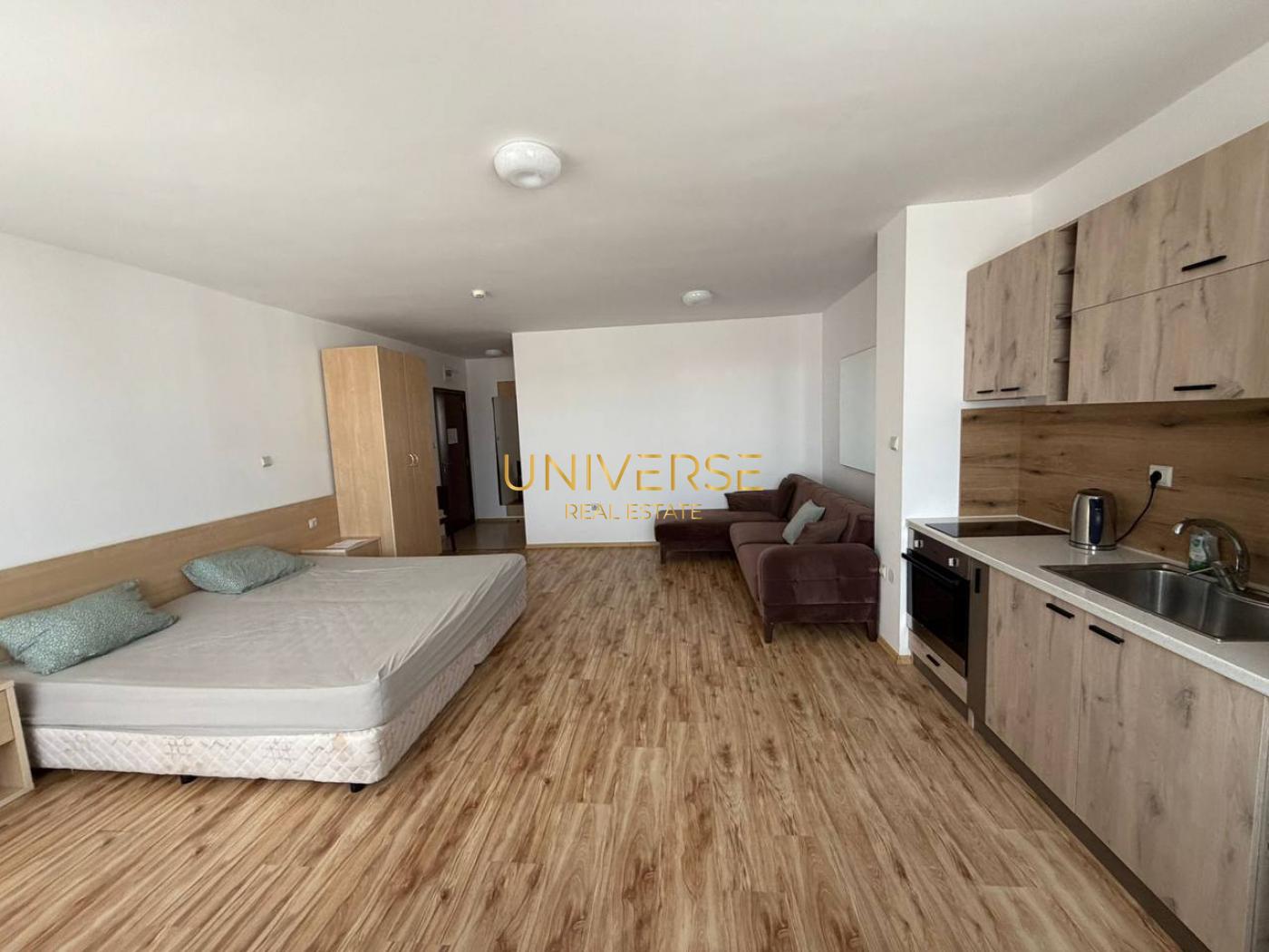 Ratenzahlung: 4 Jahre! Anzahlung: 60 %, Restbetrag mit 7 % p. a. Wir bieten ein geräumiges Studio-Apartment in einer schönen Anlage in Sonnenstrand, nahe Koscharitsa, zum Verkauf an. Die Anlage liegt am Fuße des Balkangebirges (Stara Planina). Das Apartment ist möbliert. Aufteilung: Wohnküche, Badezimmer mit Dusche, Terrasse mit Blick auf den Pool. Zur Anlage gehören ein Restaurant, ein Swimmingpool, ein Kinderspielplatz, Freizeitbereiche und ein Grillplatz. Sicherheitspersonal. Parkplatz. Akt 16. Nr. 5211