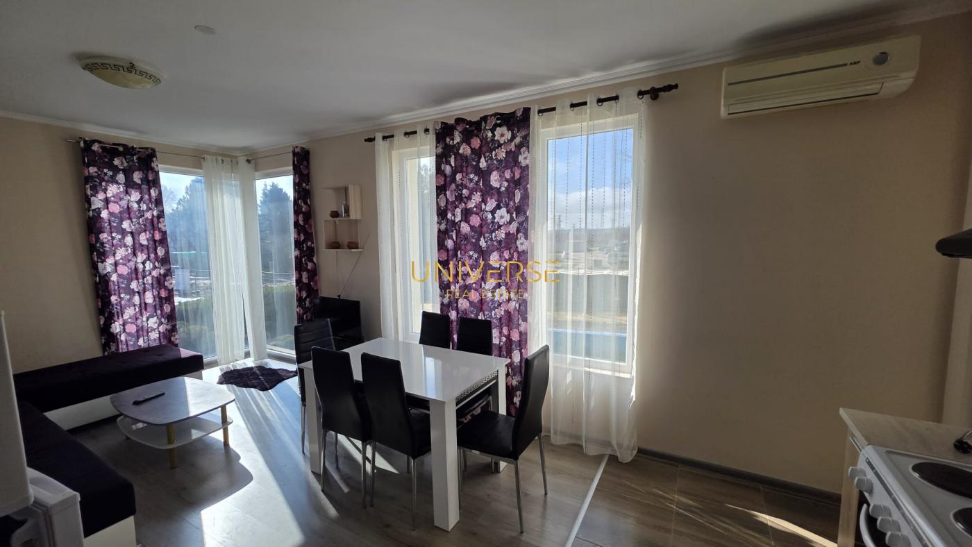 Diese 2-Zimmer-Wohnung in einer neuen, modernen Wohnanlage im ruhigen Westen von Sonnenstrand steht zum Verkauf. Sie besteht aus einer Wohnküche, zwei Schlafzimmern, einem Duschbad und einer Terrasse. Die Wohnung wurde kürzlich renoviert und ist modern möbliert und ausgestattet. Direkt neben der Anlage befindet sich eine große Parkanlage. Sandstrände sind nur 500 Meter entfernt. Zahlreiche Annehmlichkeiten wie Cafés, Geschäfte, Restaurants, Bars, Diskotheken, eine Wechselstube und eine Haltestelle des öffentlichen Nahverkehrs sind fußläufig erreichbar. Die Anlage eignet sich für die ganzjährige Nutzung. Das Gebäude grenzt an einen Landschaftspark mit Swimmingpool. Es verfügt über Aufzüge, eine Rezeption und einen Außenpool. Aktenzeichen 16.#5743