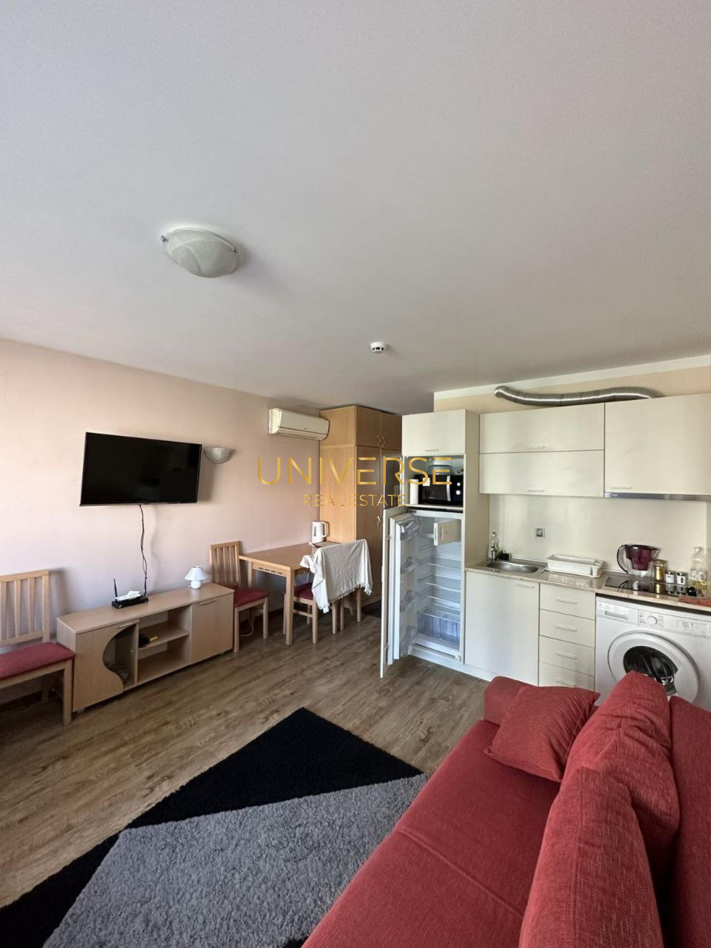 Ein gemütliches Studio-Apartment in einer exklusiven Anlage in Sunny Beach steht zum Verkauf. Es wird möbliert und ausgestattet verkauft. Die Anlage bietet folgende Annehmlichkeiten: Außenpool, Kinderbecken, beheizter Whirlpool, Entspannungsbereich mit Liegestühlen, Outdoor-Fitnessbereich, gepflegter Garten, Spielplatz, Sicherheitspersonal und Videoüberwachung. Die Anlage ist von einer Parkanlage umgeben. Alle wichtigen Einrichtungen sind fußläufig erreichbar. Akt 16.#5240