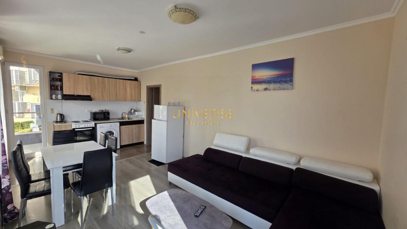 Wir bieten Ihnen eine 1+1-Wohnung in einer exklusiven Anlage in Sunny Beach zum Kauf an. Die Wohnung verfügt über ein Wohnzimmer mit Kochnische, ein Schlafzimmer, ein Badezimmer mit Dusche und einen komfortablen Balkon. Sie ist komplett möbliert und sofort bezugsfertig! Die Anlage befindet sich in einem gut erschlossenen Teil des Ferienortes Sunny Beach, erstreckt sich über 45.000 Quadratmeter und bietet zahlreiche Annehmlichkeiten, darunter: