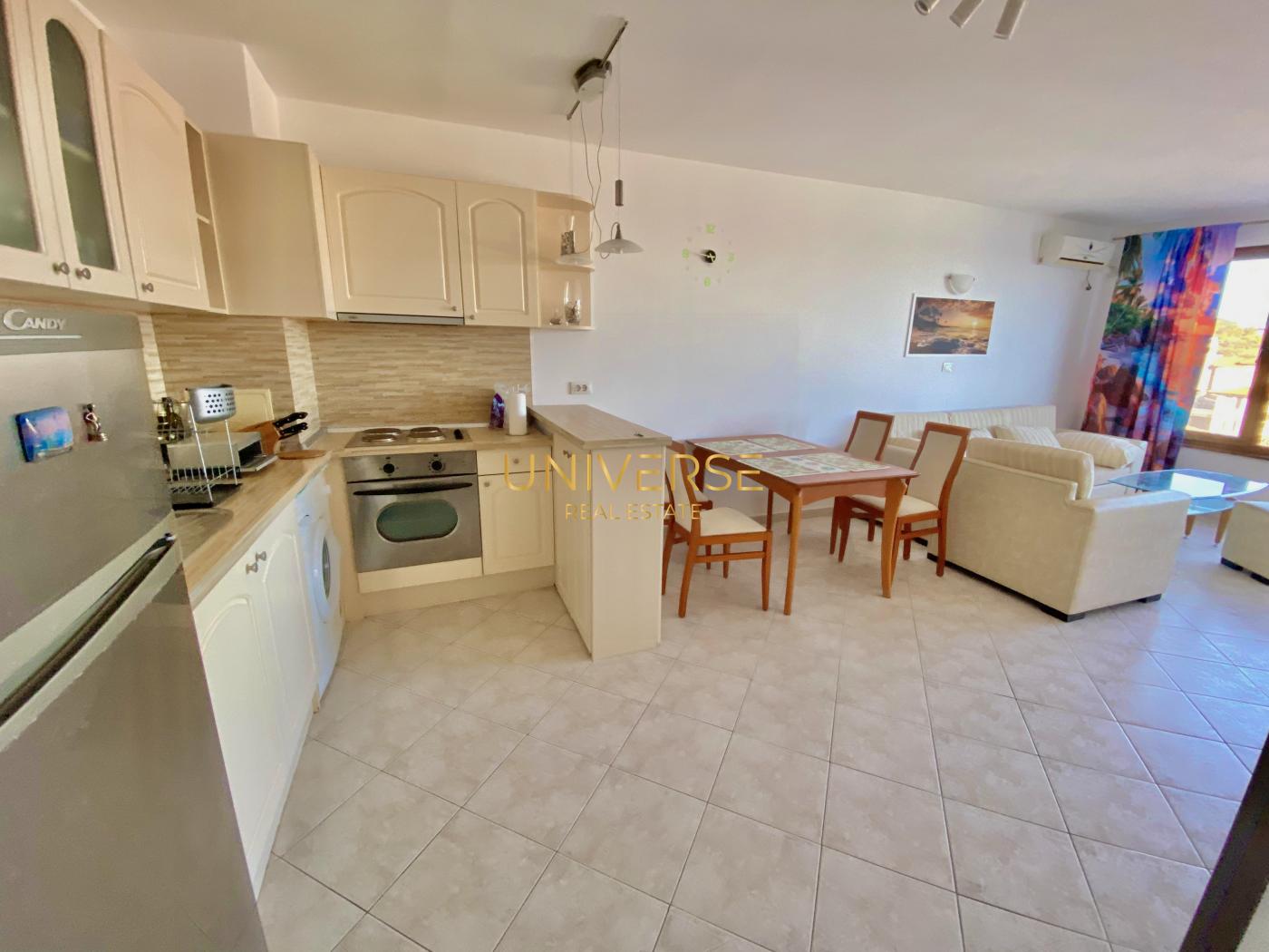 Eine 2+1-Zimmer-Wohnung in einer komfortablen Wohnanlage in Kosharitsa steht zum Verkauf. Sie besteht aus einem Wohn-/Essbereich mit Küche, zwei Schlafzimmern, einem Flur, einem Badezimmer und zwei Terrassen mit Meer- und Poolblick. Die Wohnung ist komplett möbliert und ausgestattet. Die Anlage befindet sich in malerischer Lage am Fuße des Balkangebirges. Der Kalinata-Nationalpark liegt in der Nähe. Sonnenstrand ist 2 km und der Strand 3 km entfernt. Die Altstadt von Nessebar erreichen Sie nach 7 km und die Stadt Burgas nach 30 km. Dank der natürlichen Hanglage der Anlage genießen die Wohnungen einen atemberaubenden Blick auf das Meer und die umliegenden Badeorte. Die Gegend ist gut an das öffentliche Verkehrsnetz angebunden. Die Anlage ist komplett umzäunt und verfügt über eine ansprechende Landschaftsgestaltung mit Parkbeleuchtung. Zu den Annehmlichkeiten vor Ort gehören: Concierge-Service, Außenpool mit Kinderbecken, Ruhebereich, Restaurant, Grillplatz, Geschäft, Kinderspielplatz, Sportplatz, Fitnesscenter im Freien und vieles mehr. Videoüberwachung. Parkplatz. 16.#5247
