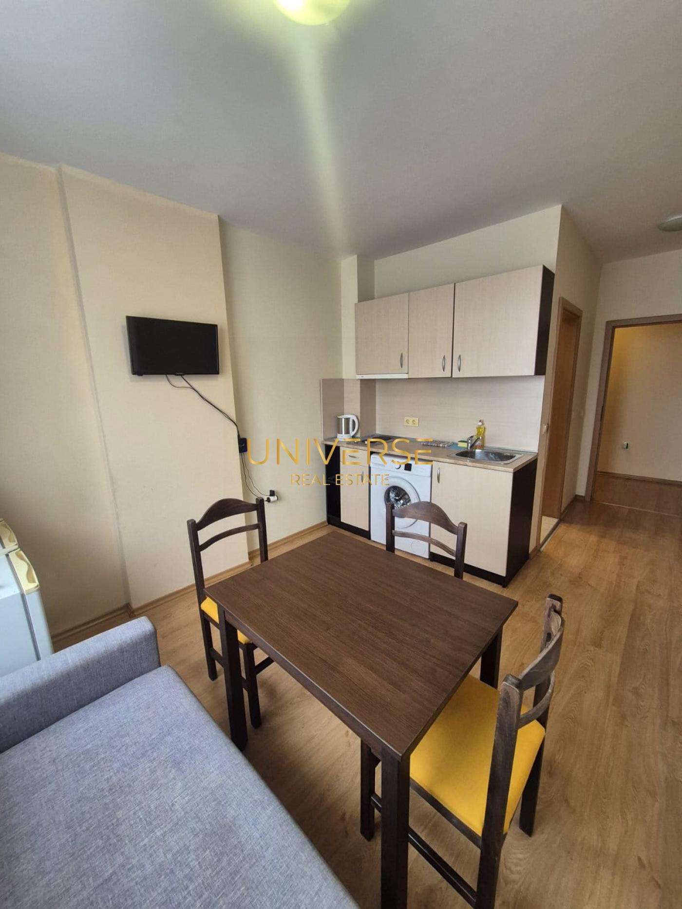 Eine 1+1-Wohnung in einer Luxusanlage in Sunny Beach steht zum Verkauf. Aufteilung: Wohnküche, Schlafzimmer, Badezimmer, Balkon. Die Anlage verfügt über eine große Parkanlage mit Kinderspielplätzen, Pavillons, Grillmöglichkeiten, Spazierwegen und einem Fitnesscenter im Freien. Zur Ausstattung gehören außerdem ein 47 Meter langer Swimmingpool, ein beheiztes Kinderbecken, eine Poolbar, ein Restaurant, Parkplätze, eine Lobby/Rezeption, eine Brandmeldeanlage, 24-Stunden-Sicherheitsdienst und Videoüberwachung. Aktenzeichen 16.#5577