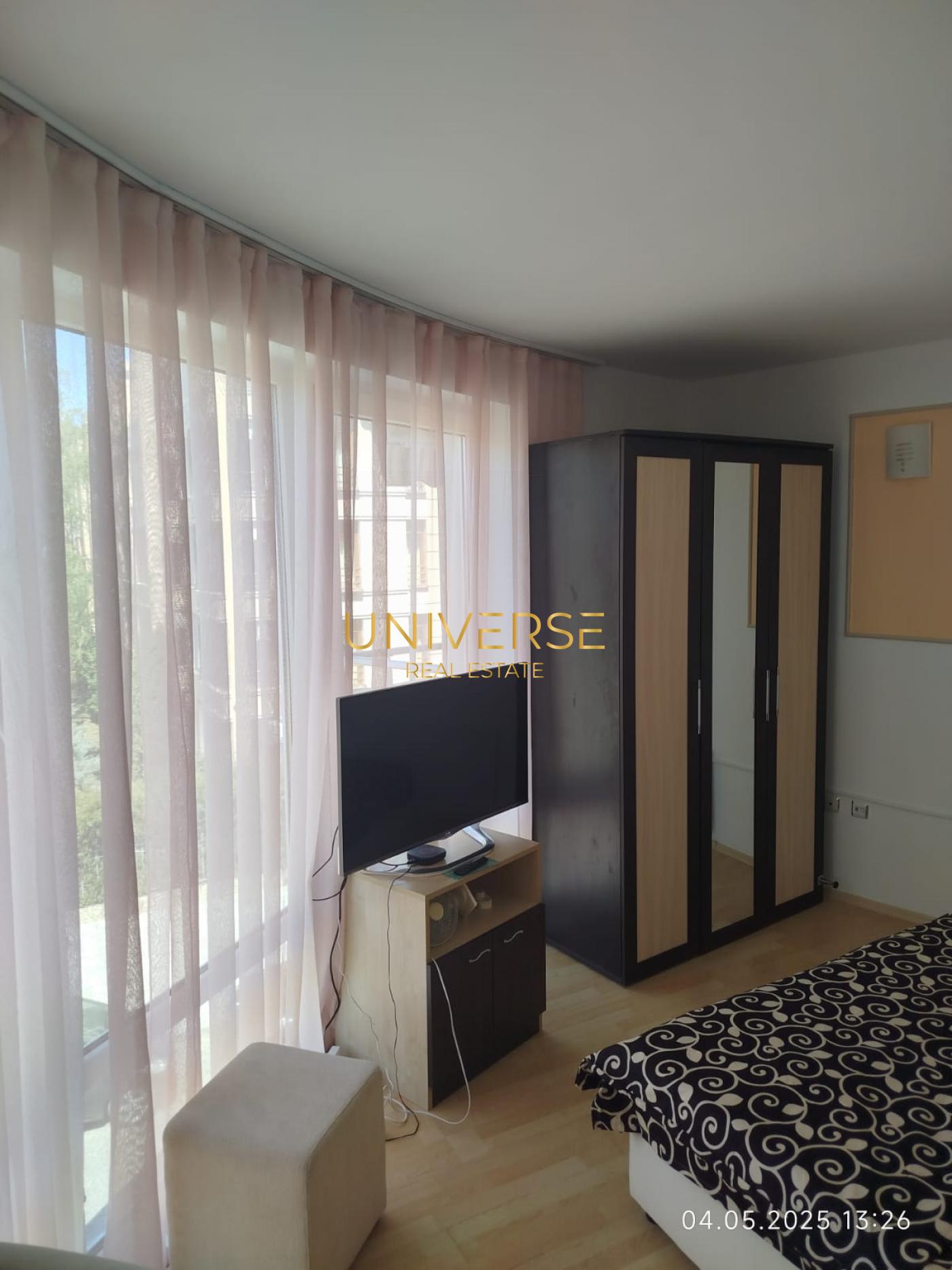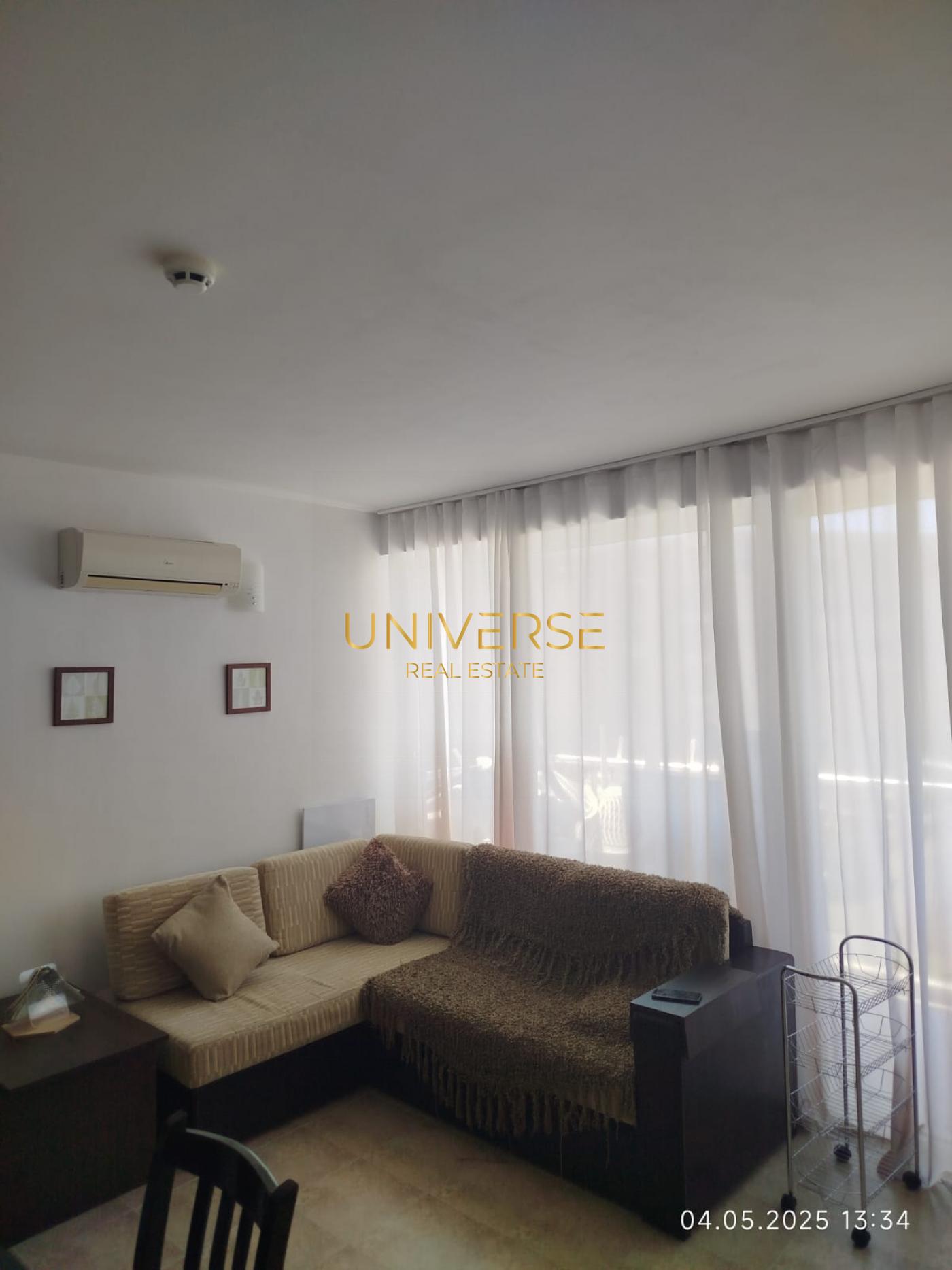 We offer an excellent one-bedroom apartment in Sunny Beach. It consists of an entrance hall, living room with kitchenette, bedroom, bathroom, and terrace. It is furnished and equipped. This excellent gated complex is located in the southwestern part of the resort. Sandy beaches are 450 meters away. The area boasts a beautiful park. This is a well-maintained part of the resort with well-developed infrastructure. On-site amenities include a swimming pool with a relaxation area, security, and parking. Act 16 is available.#5525