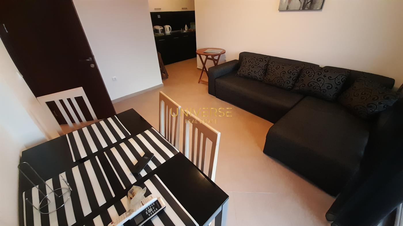 A 2+1 apartment in a year-round complex in Sunny Beach is for sale. It is sold furnished and equipped. The complex boasts two parks ideal for walks, recreation, and various sports activities. Three artificial lakes surrounded by palm trees make the complex a haven for relaxation, along with playgrounds and ten swimming pools with children's sections. The apartment has everything for a wonderful stay and relaxation. Act 16 #5583