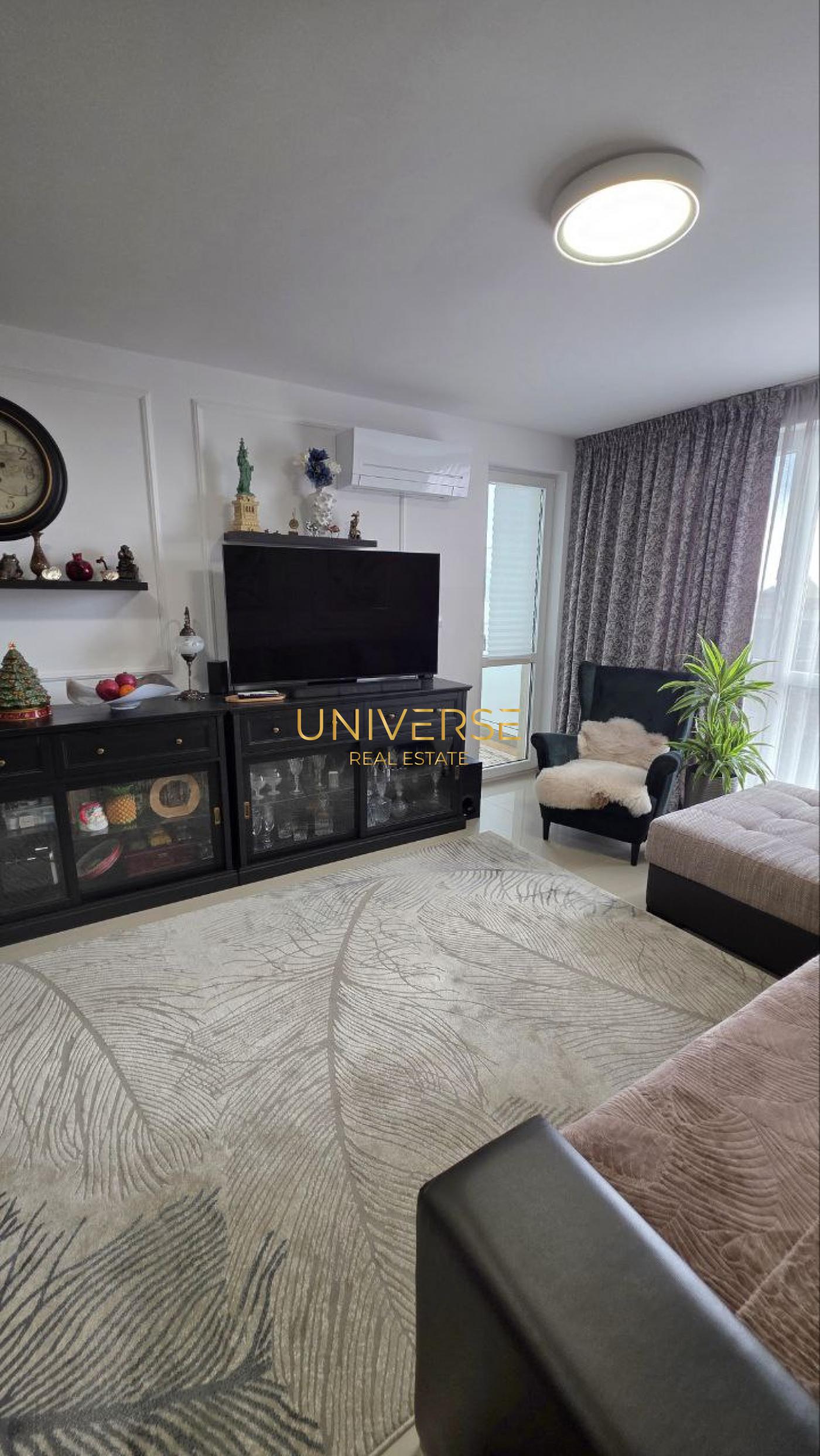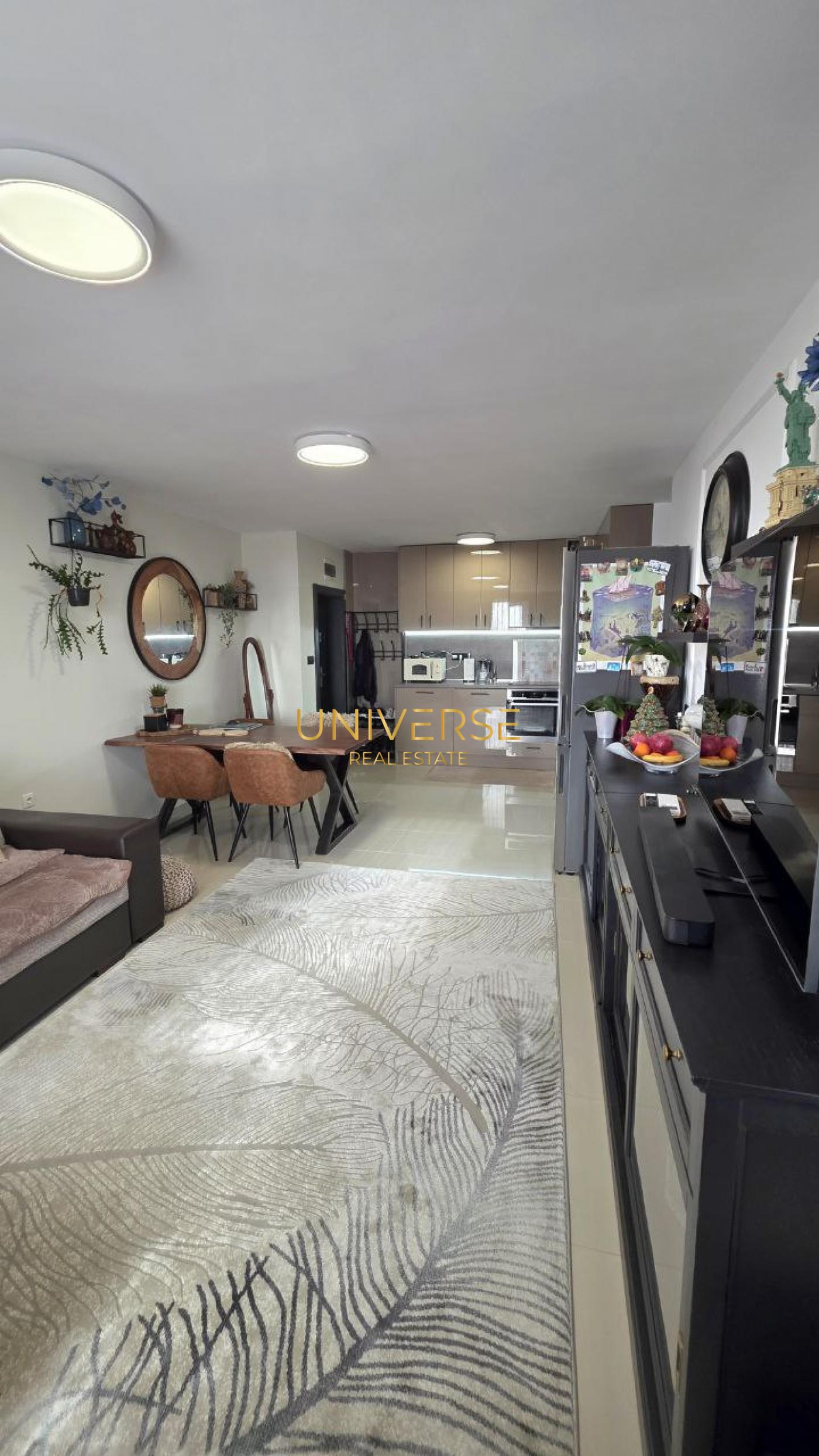 A 2+1 apartment in a gated complex in Sveti Vlas is for sale. It consists of a dining room/kitchen, 2 bedrooms, a bathroom, and a terrace with sea and mountain views. It is fully furnished and equipped with high-quality appliances, including an oven and a large refrigerator. The complex is located in a quiet area, a 10-minute walk from the beach and 250 meters from the Mercury grocery store. The area is popular for its beneficial effects of the sea and clean air. Infrastructure and amenities in the complex: year-round 24-hour security and maintenance, an outdoor pool, an elevator, a garden, a children's playground, and free underground parking for owners. Fee: 5 euros/m². Act 16 #5343