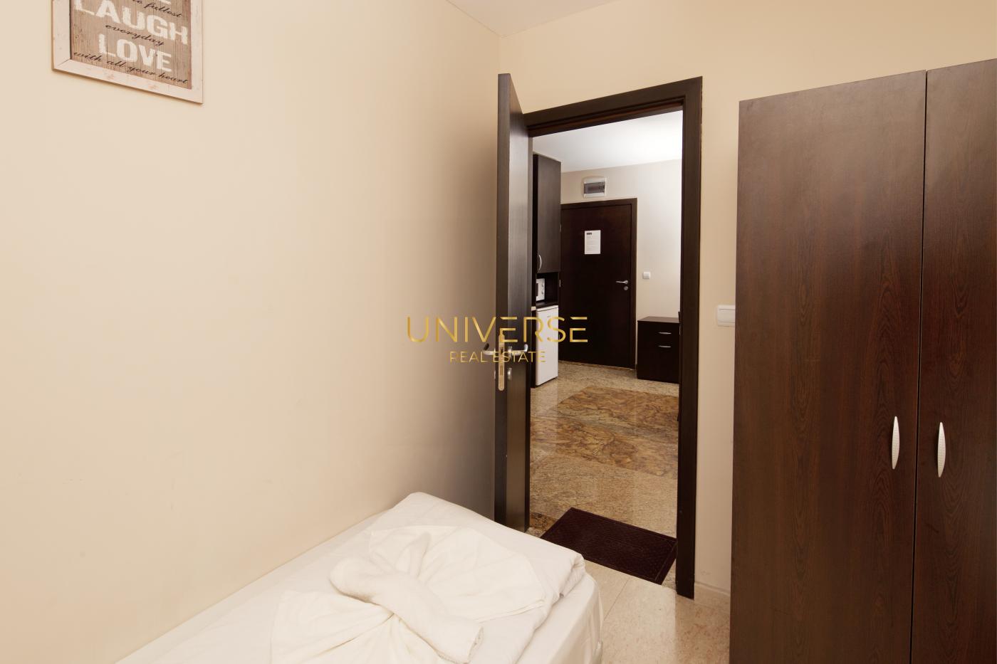We offer for sale a 2+1 apartment in Sunny Beach. It consists of a living room with a kitchenette, 2 bedrooms, a bathroom, and a terrace. The apartment is furnished and equipped. The complex offers the following amenities: a swimming pool with a sun lounger area, a grocery store, a reception, parking, and video surveillance. The complex is located 7 minutes from Bulgaria's most famous beach, Cacao Beach. Its ideal location ensures a relaxing and fulfilling holiday. A wide selection of cafes, restaurants, bars, discos, and shops are located nearby. Act 16.#5714