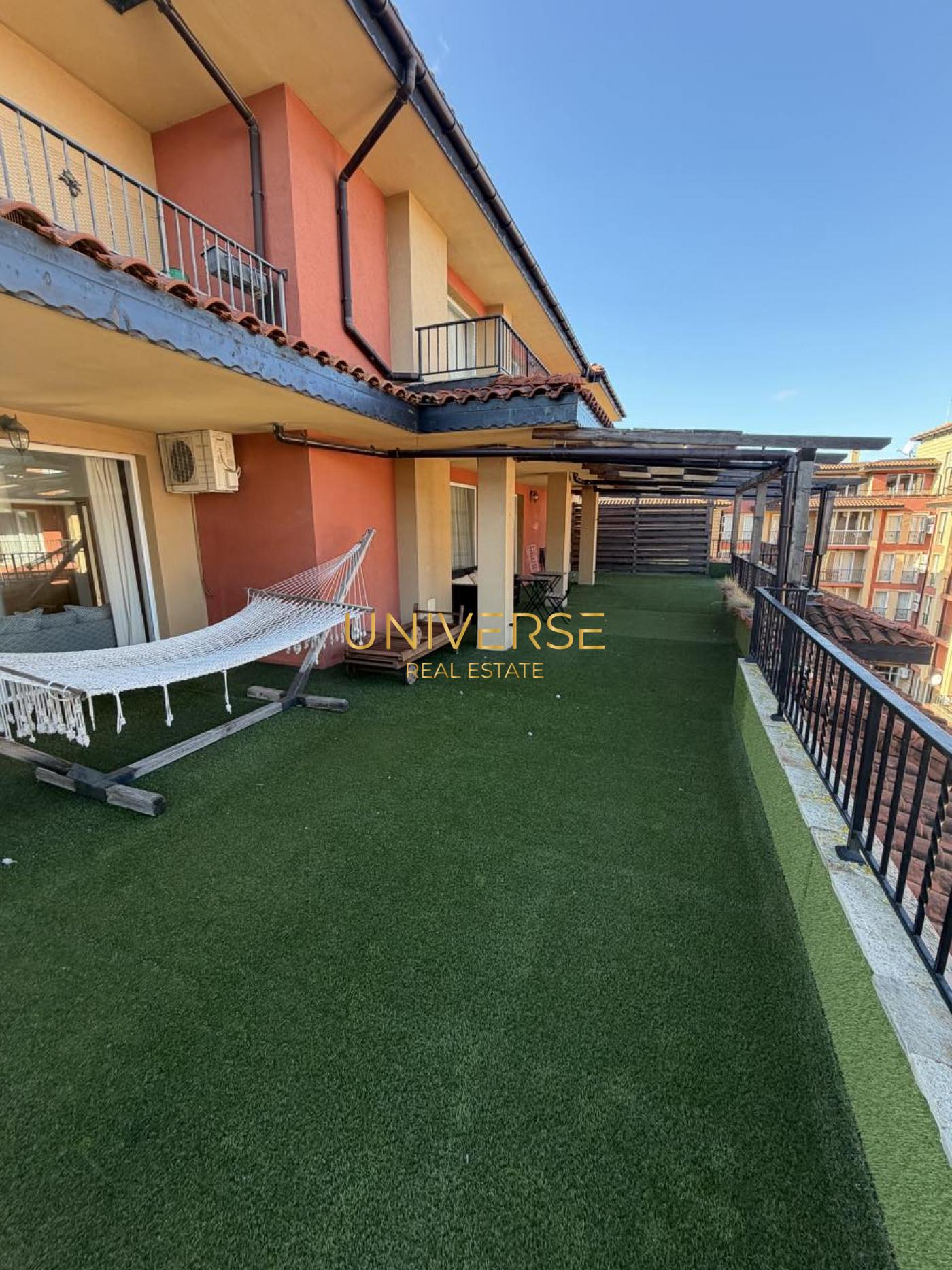 Payment installments: 30% down payment - €58,500, balance over 3-5 years. This two-bedroom apartment in a cozy complex in Sunny Beach is for sale. The apartment is fully furnished, features 3 bathrooms, 3 bedrooms, 2 balconies, and a terrace. It's an excellent option for year-round living or rental. All necessary amenities are located nearby. The property features well-maintained grounds with swimming pools, parking, an elevator, and security. Act 16 #5268