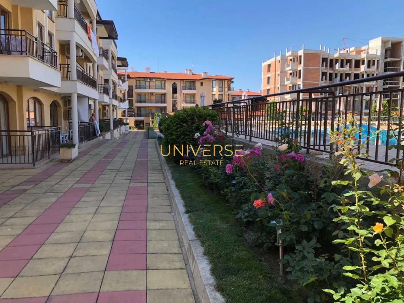 A studio apartment with a convenient layout is for sale in a well-maintained complex in Sveti Vlas. It is furnished and equipped with all necessary appliances. The complex features two large swimming pools for adults and a separate children's pool, spacious, well-maintained grounds, a pool bar, a restaurant, a playground, a grocery store, 24-hour security, parking spaces, and year-round maintenance of common areas and grounds. Top location – close to all year-round amenities, the sea, and the mountains. Act 16 #5425