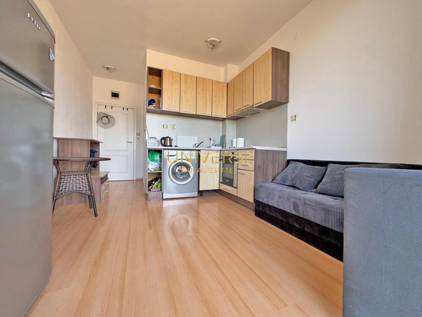 We offer for sale a studio apartment in the quiet family complex of Tinkovo. It is being sold fully renovated, furnished, and equipped. This gated community boasts spacious grounds, well-maintained infrastructure, and affordable amenities. It is located just a short drive from the center of Sunny Beach and the beach, in an area with clean air and a tranquil atmosphere. The complex offers everything necessary for a comfortable stay: a large swimming pool, a café and bar, a shop and security, a playground, and parking. The complex is well-established and suitable for permanent residence or seasonal vacations. #5200