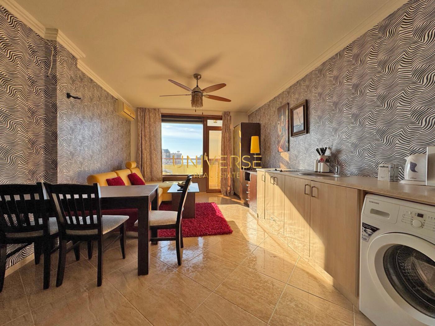 Продается апартамент 1 1 в комфортабельном комплексе Святого Власа. Планировка кухня- столовая, спальня, сан.узел, 2 террасы. Укомплектован новой мебелью и техникой. Комплекс открыт круглогодично и отлично подходит для проживания на постоянный период. Закрытая территория, бассейн, игровая площадка для детей и паркинг – доступны для всех жильцов комплекса. К морю всего 400 метров. Акт 16 .#5399