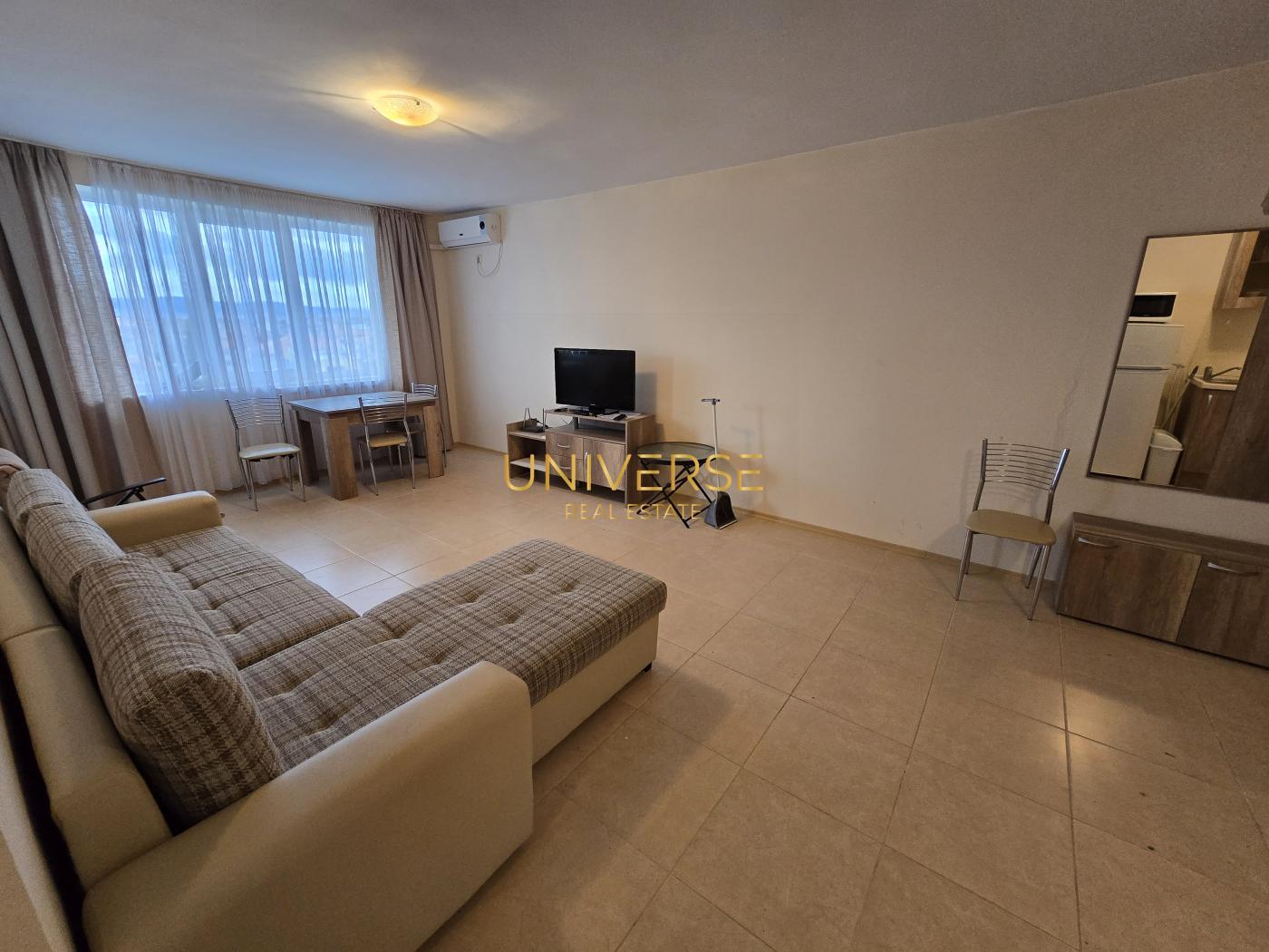 Представляем Вашему вниманию, просторную квартиру формата 1 1 в жилом комплексе в Равде. Квартира с большой террасой и прекрасным видом на море. Техника и меблировка включены в стоимость недвижимости. Комплекс находится в хорошем районе – это тихое место вблизи к пляжу. На территории открыт большой бассейн, детская площадка, парковка. К морю всего 200 м. Низкая Такса поддержки. Акт 16. #5174