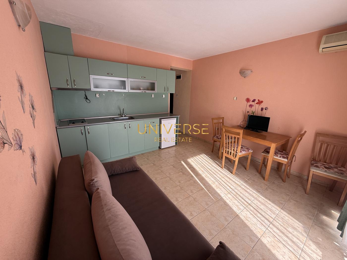 Продается квартира с одной спальней, всего в 100 метрах от моря в Святом Власе! Апартамент полностью меблирован и оборудован всей необходимой техникой. В апартаменте очень тепло и сухо, подходит для круглогодичного проживания. Комплекс расположен в привлекательном районе, рядом множество ресторанов, супермаркетов, кафе, круглогодичный супермаркет Меркурий. На территории комплекса есть бассейн. Закрытая территория. Парковка. Возможна рассрочка до конца 2026 года. Первоначальный взнос- 40 %. Акт 16.#5836