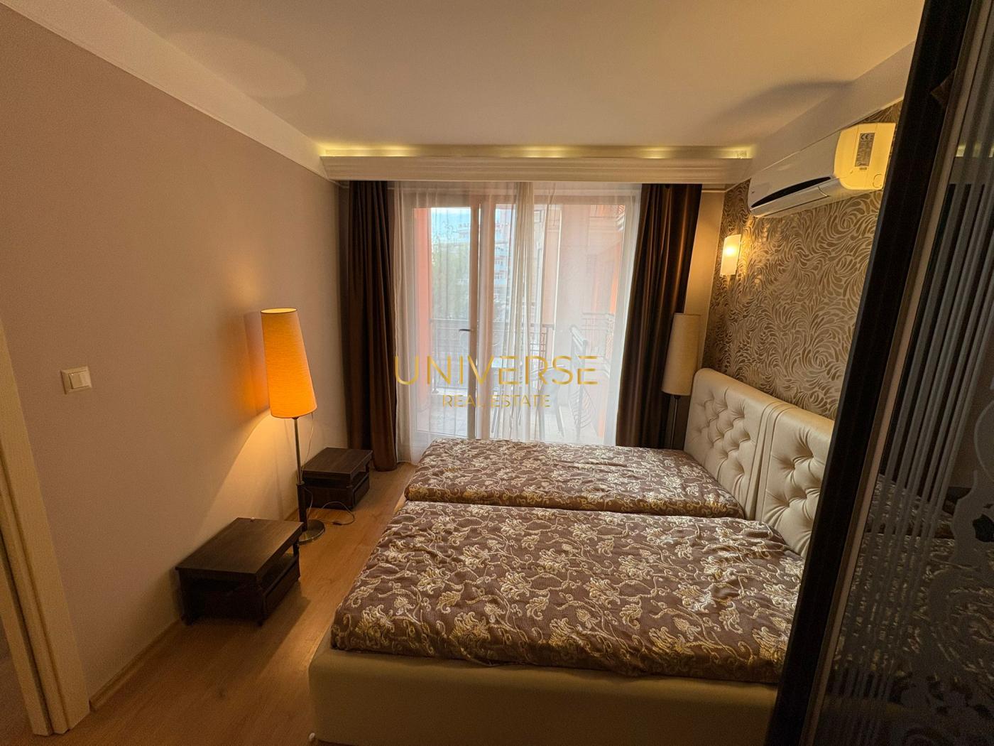 Продажа апартаментов 2 1 в комплексе премиум-класса на Солнечном Берегу. Апартамент с новым ремонтом, стильной мебелью и новой бытовой техникой. Апартамент состоит из столовой с кухней, 2-мя спальнями, сан.узла с душевой кабиной и террасы с видом на бассейн. Инфраструктура комплекса включает открытый бассейн и джакузи, спа-зону с сауной, современный фитнес-зал, парковую зону, фонтан, зону отдыха, детскую площадку, волейбольную площадку, продуктовый магазин через дорогу. Идеальный вариант для комфортной жизни, отдыха или инвестиции. Всего 400 метров до пляжа — 5 минут пешком до моря. Центральное расположение: рядом магазины, кафе, остановка автобуса (30 м), супермаркет (350 м), Всего 3 км до живописного старинного Несебра. 25 км до аэропорта, 35 км до Бургаса. Акт 16.#5658