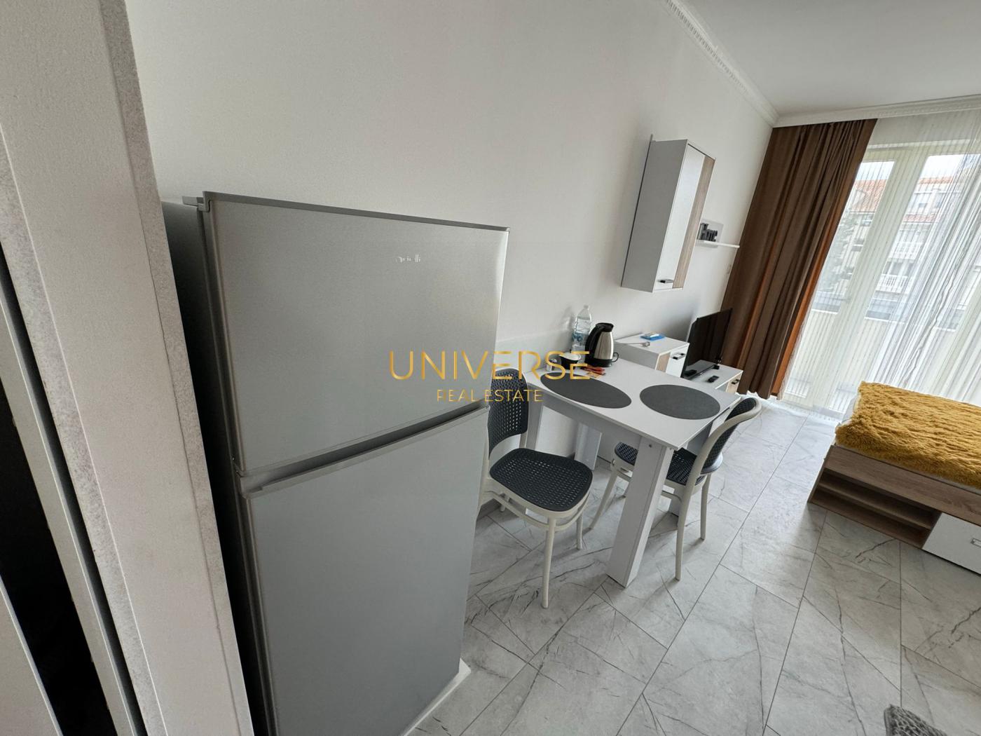 Предлагается к продаже большая студия в круглогодичном комплексе на Солнечном Берегу. Студия с новым ремонтом, современной мебелью и техникой. Комплекс расположен в центре курорта и в шаговой доступности от всей необходимой круглогодичной инфраструктуры: супермаркеты, магазины, рестораны, кафе, поликлиника, полиция, банки, банкоматы, автобусная остановка. К морю 5 минут пешком. На территории комплекса находиться бассейн ресторан. Акт.16. #4981