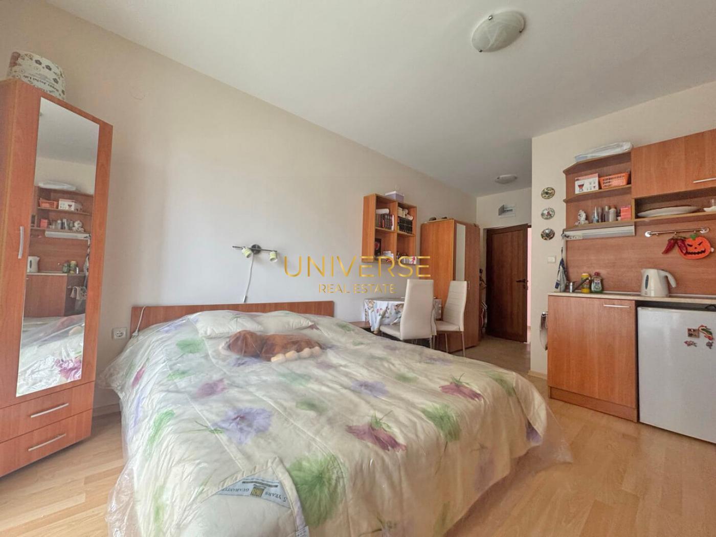 Представляем к покупке хорошую квартиру-студию на Солнечном Берегу. Находится в комплексе комфортабельных апартаментов, рядом с парковой зоной, в 10 минутах ходьбы от моря и прекрасных оборудованных пляжей. Квартира светлая и уютная, меблирована, есть терраса . Комплекс имеет закрытую огороженную территорию, с контролем доступа. Акт 16.#5821