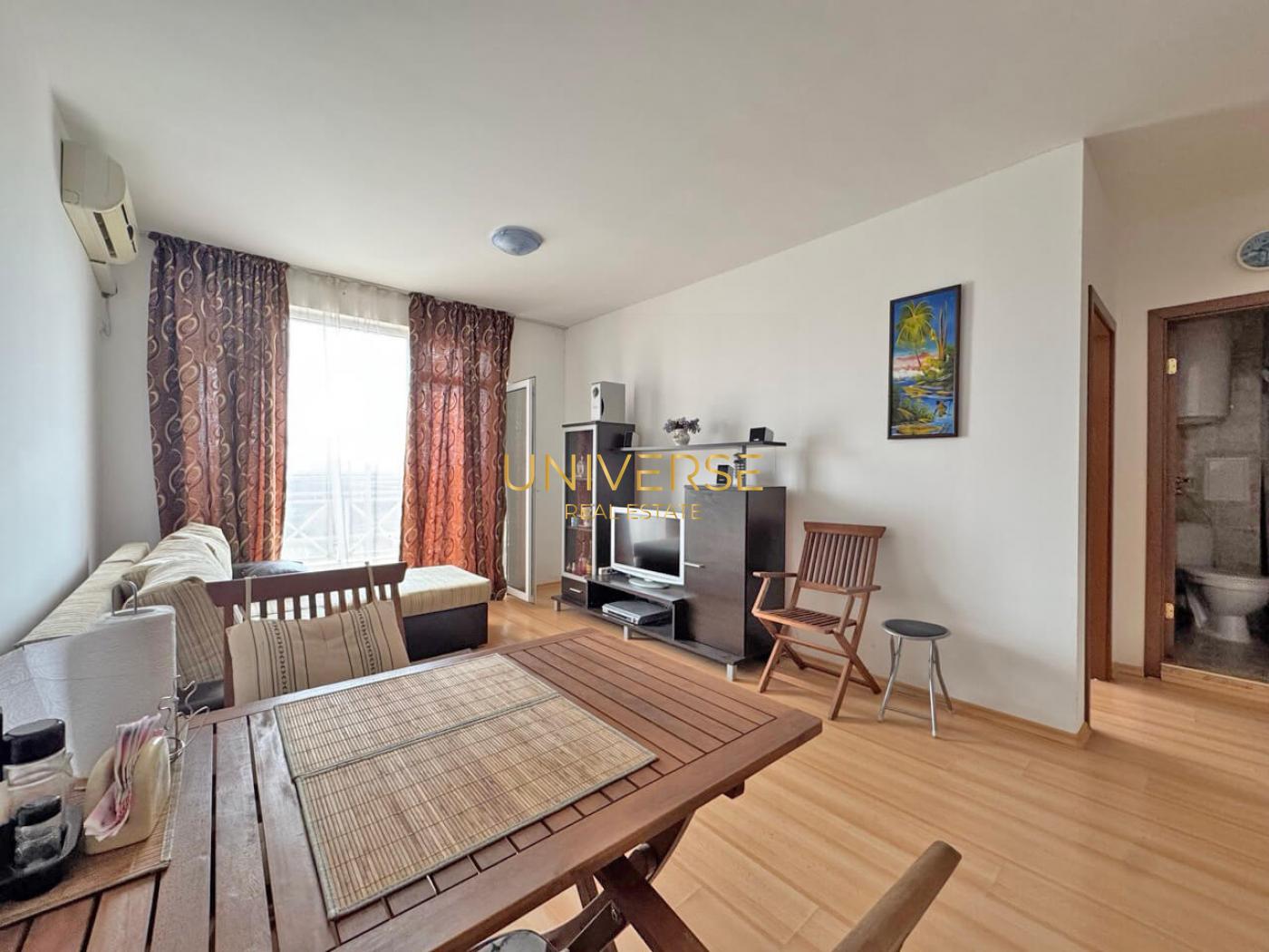 Продается апартамент 1 1 в в тихом ,семейном комплексе в Тынково. Состоит из кухни- столовой, спальни, сан. узла, большого балкона. В квартире есть вся техника. В комплексе есть 6 бассейнов, теннисный корт, баскетбольная площадка, футбольное поле, мини гольф, несколько игровых детских площадок, парковка. Акт 16.#5553