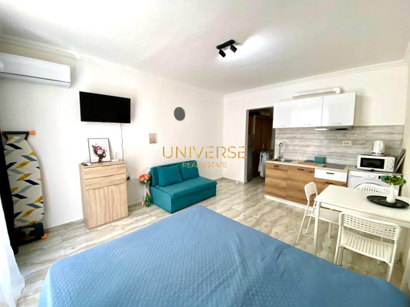 Продается уютная студия в РАССРОЧКУ в новом современном комплексе на Солнечном Берегу. Полностью с новым ремонтом, современной мебелью и качественной техникой. Комплекс с развитой инфраструктурой: Бассейн, Охрана и видеонаблюдение 24/7 - Детская площадка. В пешей доступности вся необходимая круглогодичная инфраструктура. Дом введен в эксплуатацию. Акт.16 Первый взнос всего 35500 евро. Остаток до июня 2027 года.#5042